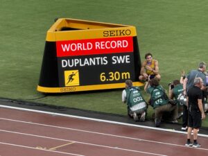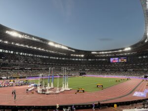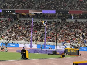 そしてそして、棒高跳びのデュプランティス選手(スウェーデン)が世界記録に挑戦して見事6m30cmを飛び越えた時!あの瞬間を現地で見届けることができました。6m30cmという信じられない高さを飛び越える姿はまさに鳥人。